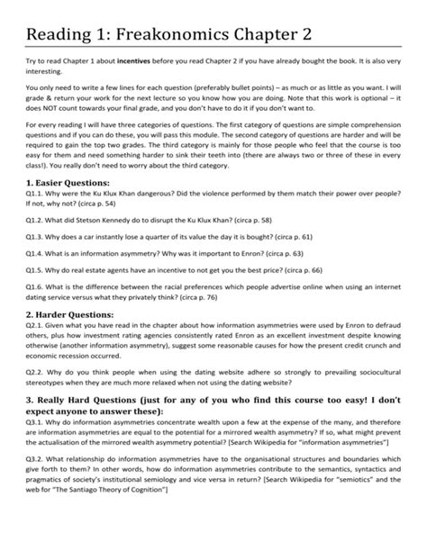 Read Online Freakonomics Chapter 2 Answers Doc online is a convenient and frugal way to read Freakonomics Chapter 2 Answers you love right from the comfort of your own home. Yes, there sites where you can get Doc "for free" but the ones listed below are clean from viruses and completely legal to use.
