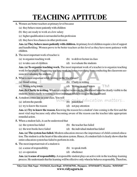Read Teaching Aptitude Question And Answers Kindle Editon